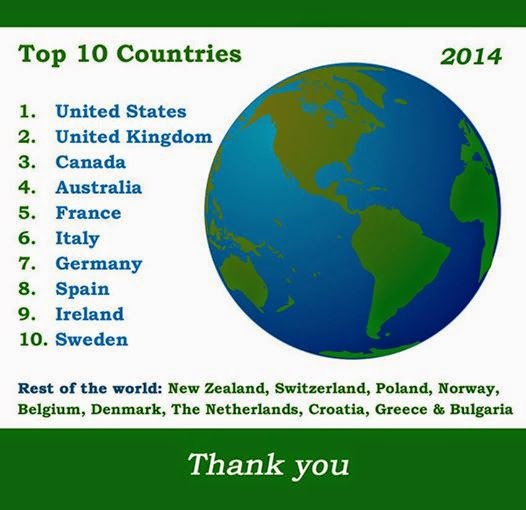A look at the stats for my Etsy shop over 2014 shows the top 10 Countries where my customers are located. This is very similar to the stats for my website except the top two Countries are reversed. It's amazing to know that Miss Bohemia is doing well both in the UK and internationally thanks to my lovely customers. This is much more than I had hoped for when Miss Bohemia was just an idea :-)