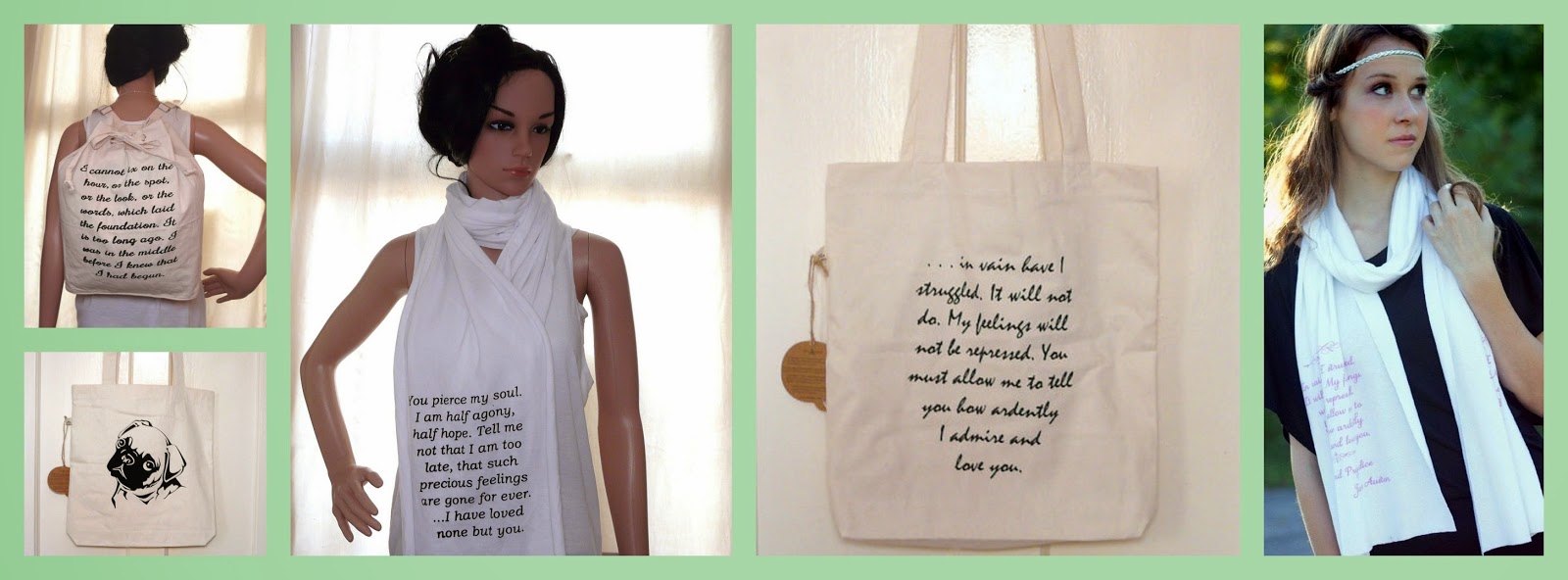 The clothing collection was teamed up with fabric based accessories which included tote bags, rucksacks and scarves. In addition to literary designs, there's cute kittens, adorable pugs and other designs too!